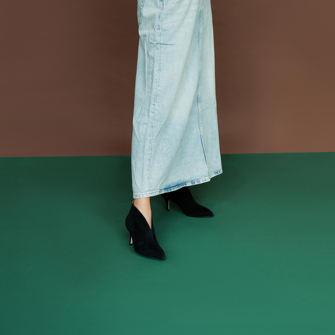 Valentine. Made from 100% certified LWG suede, this low-cut ankle bootie features a pointed toe and a structured, feminine silhouette. It includes an upcycled fish leather detail with ASC certification and WODEN’s Natural Soft Technology™ for added comfort and support. Suitable for day or evening wear.
