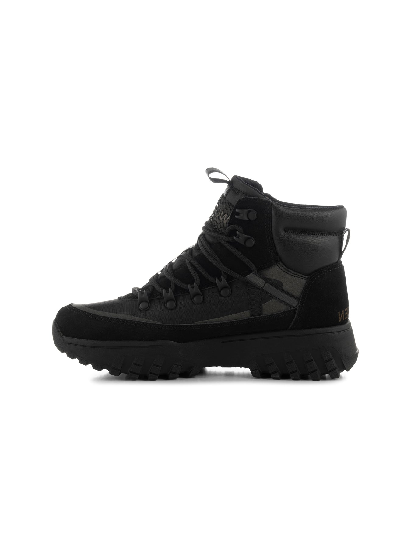 Tessa Waterproof is a hiking-inspired boot featuring a characteristic track sole for an edgy look. The boot is crafted from textile and suede with beautiful details in fish leather.